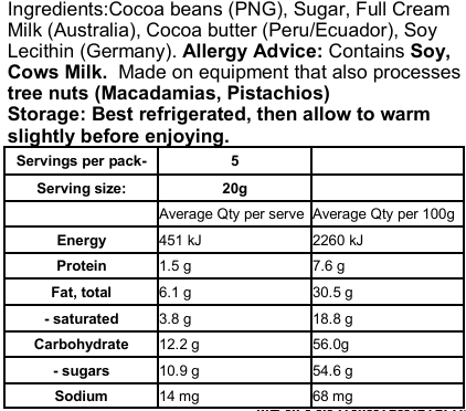 Sometimes simple says it best. This 2D Easter egg showcases our beautifully smooth 52% single origin milk chocolate, crafted bean-to-bar in Mission Beach from cocoa grown on Karkar Island, Papua New Guinea.