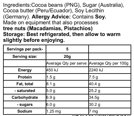 Crafted bean-to-bar in Mission Beach from cocoa grown on Karkar Island, Papua New Guinea, this chocolate delivers a deep cocoa richness with gentle fruity notes and a smooth, lingering finish. With no added inclusions, it lets the true character of the cocoa shine, showcasing the unique flavour profile of its origin.